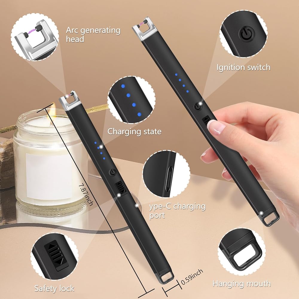 Electric Lighter, Rechargeable Lighter with Battery Indicator Light and Safety Switch, Electric Candle Lighters for Scented Candles,Barbecues, Camping, Holiday Parties