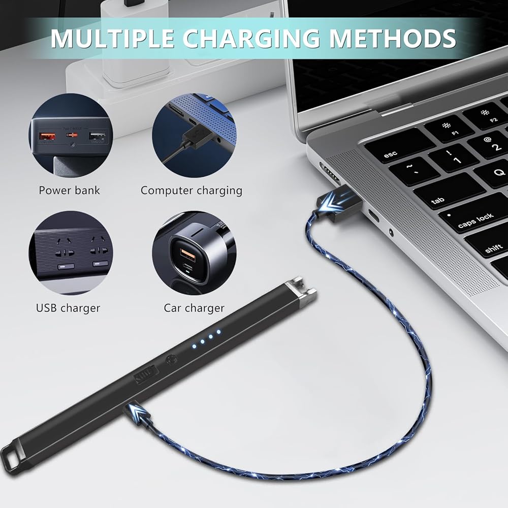 Large Capacity, Long Battery Life, and Worry-free Fast Charging - This electric candle lighter is equipped with a large-capacity built-in battery, which can easily meet the needs of long-term outdoor travel, hiking and camping, or daily high-frequency use. The handle is equipped with 4 LED indicators, which can clearly indicate when the battery is low. The included USB charging cable is compatible with various devices such as power banks, laptops, and car chargers.