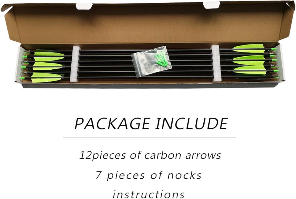 Package includes :12 pieces of Carbon Arrows. (6 Nock for free.)