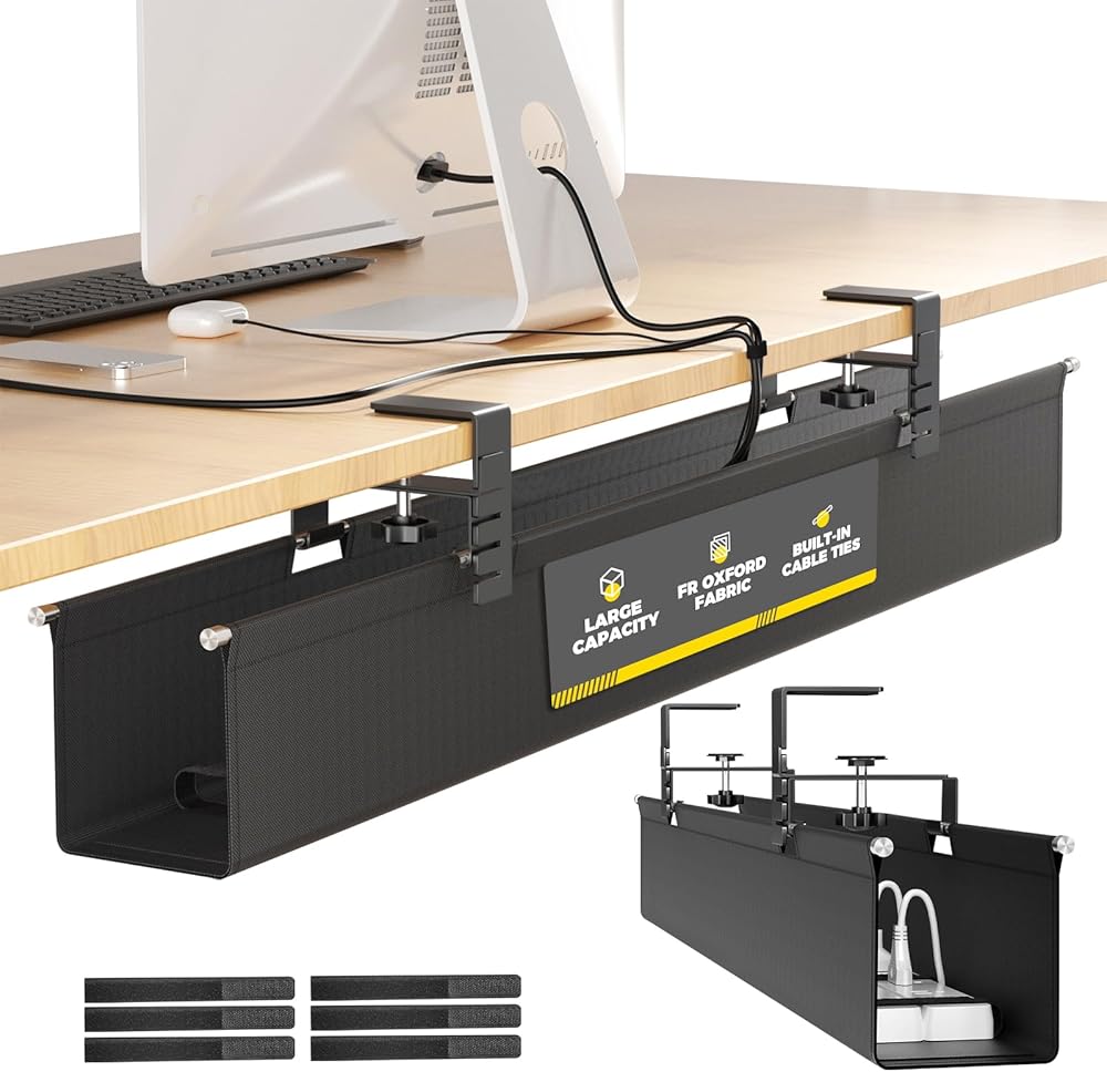 Extra Large Containment - The 28.4 inch oversize under desk cable management easily accommodates power extension cords, surge protectors, adapters, and other cords and cables. The clamp mounting bracket is made of sturdy metal and can hold up to 30 pounds, making it the perfect cable organizer for your desk to help keep your workspace tidy.
