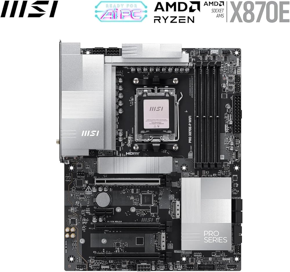 MSI MAG X870E Tomahawk WiFi Motherboard, ATX Form Factor, Supports Dual-Channel DDR5 up to 256GB, PCIe 5.0 Supports, 2x PCIe 5.0 x4 M.2 Slot, 2x PCIe 4.0 x4 M.2 Slot, 4x SATA 6GB/s, 2x USB 40Gbps Type C, Wi-Fi 7, Bluetooth 5.4, Windows 11 64-bit Support, Supports AMD Ryzen 9000/ 8000/ 7000 Series Desktop Processors