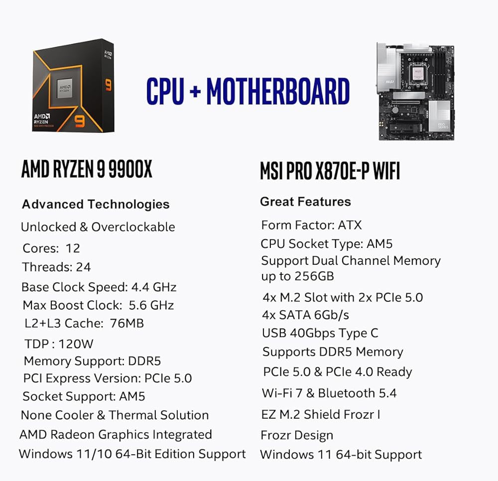 AMD Ryzen 9 9900X Desktop Processor, 12-Core, 24-Thread, 5.6 GHz Max Boost, Unlocked for overclocking, L2+L3 76 MB cache, DDR5, Default TDP 120W. The world's best gaming desktop processor that can deliver ultra-fast 100+ FPS performance in the world's most popular games