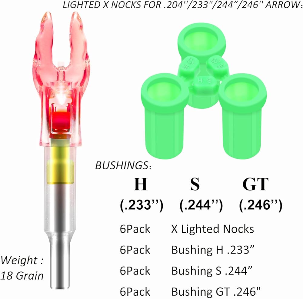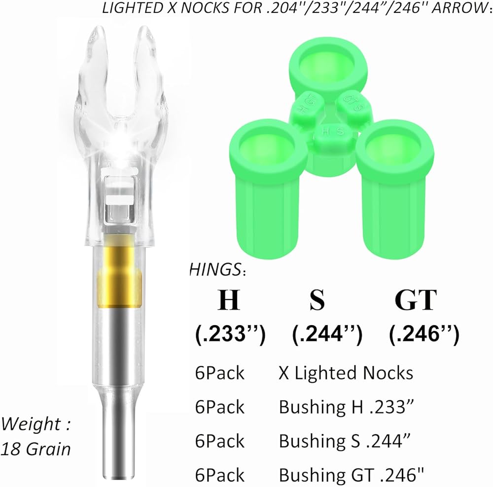 【LIGHTED X NOCKS FOR .204''/233"/244”/246'' ARROW】: X Lighted Nocks fits arrow shafts with diameters of .204, .233, .244, and .246