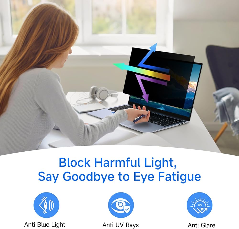 [Block Harmful Light And Say Goodbye To Eye Fatigue]: Our ZOEGAA privacy screen for laptop can block the blue light and ultraviolet rays emitted by the computer screen, and also prevent the screen from reflecting dazzling glare. Make the eyes no longer so tired as they used to be.