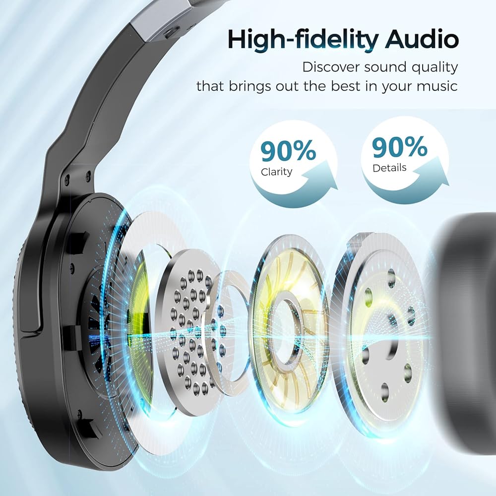 Superior Sound Quality: This bluetooth headphones with microphone delivers rich deep bass, perfectly balanced mids, and studio-grade crystal-clear highs for calls and music. Enjoy premium immersive sound quality, whether you're on calls, listening to music, or working on the road