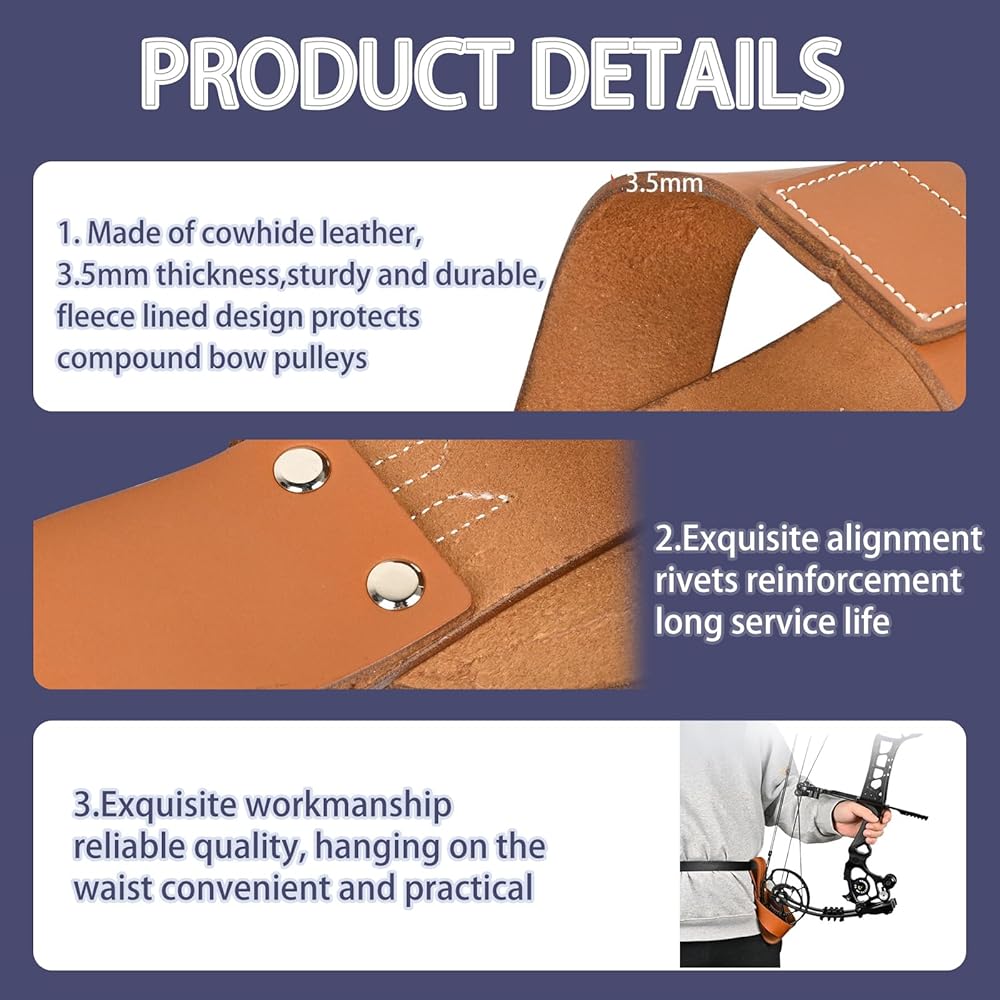 Capacity: The 5cm thickened leather at the bottom of the waist compound bow belt holder can hold the entire compound bow, and the bow rest can accommodate the pulley size of 12cm long and 7cm wide, which is suitable for most compound bows.