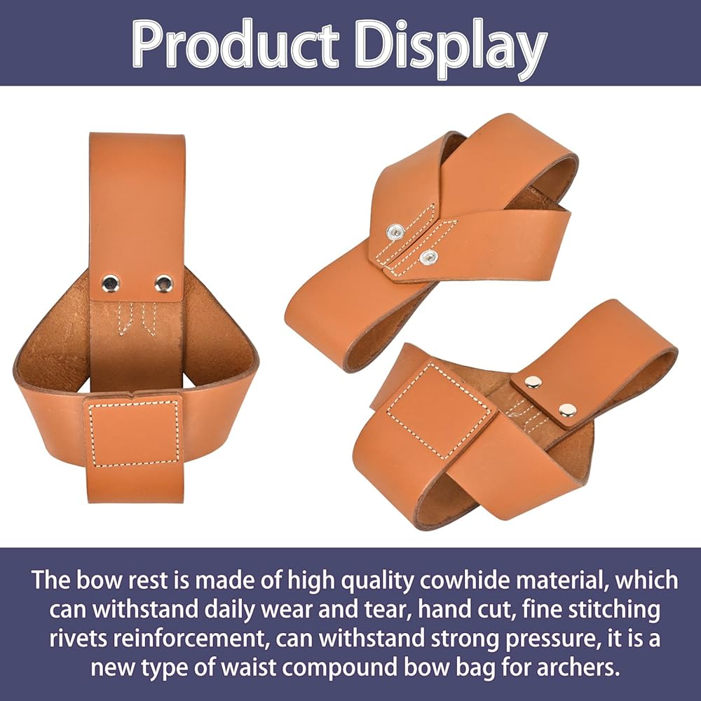 Excellent Material: SPG waist compound bow holder is made of natural cowhide, with moderate hardness and is not easy to collapse. It is hand-cut, finely routed, strong and durable, with inner fleece design, and will not cause any damage to your compound bow.