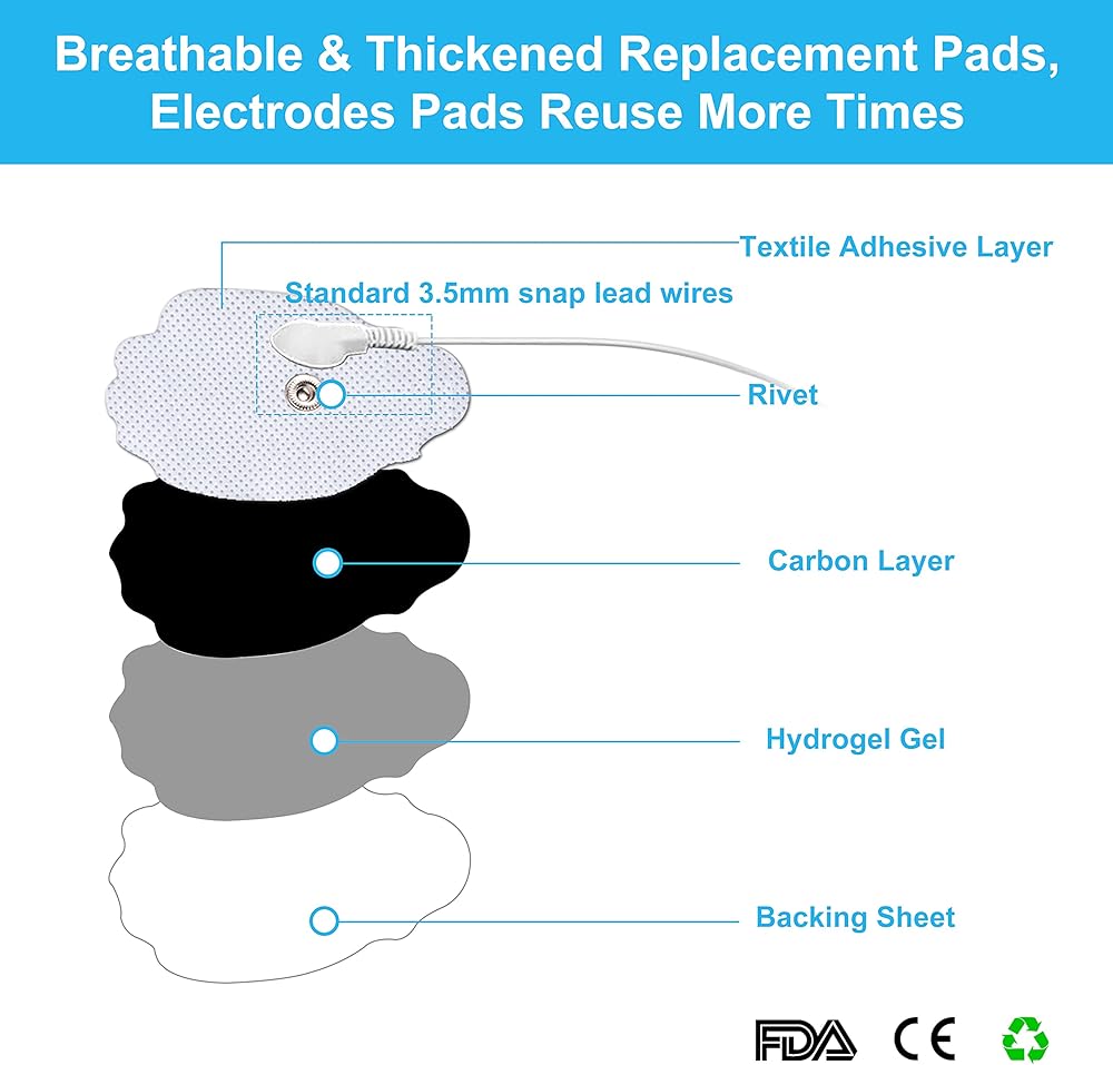 [How to use]: TENS Unit Replacement Pads stay on and are easy to take off when you need to. These electrode pads are comfortable, flexible,and durable for long term tens unit and massager use. Please cleanse and dry the skin area before use for best results.