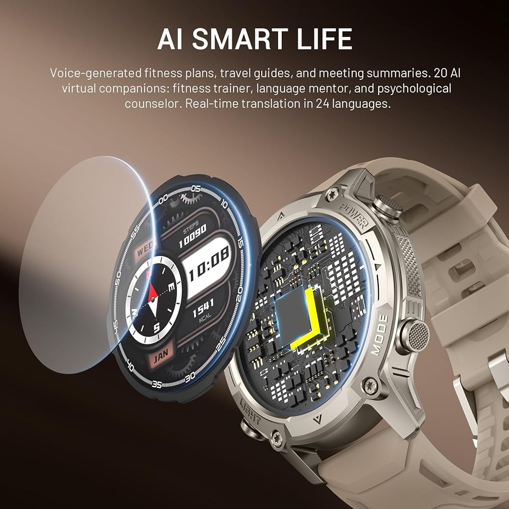 【AI Smart Ecosystem/Multimodal Interaction Hub】AI Voice Assistant: Voice-generated fitness plans, travel guides, and meeting summaries. 20 AI virtual companions: fitness trainer, language mentor, and psychological counselor. Real-time translation in 24 languages. Voice control via Bluetooth connection to reply to text messages (Bluetooth 5.3 connection required). Automatically generate daily fitness reports.
