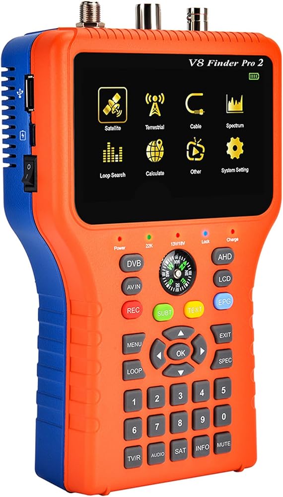 Pro-Grade Controls: DiSEqC 1.0-1.2 & Unicable commands for multi-LNB/SCR installs. 4.3-inch daylight HD screen—read meters under bright sun