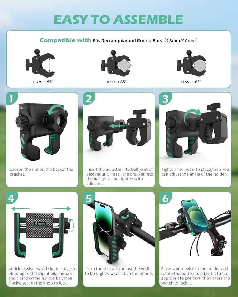 Easy Installation: A 3-second golf must-have. lt adheres well to metal cart frames memorizes phone width automatically. The 360° rotation lets you golf and check GPS simultaneously, a great choice for golfers.