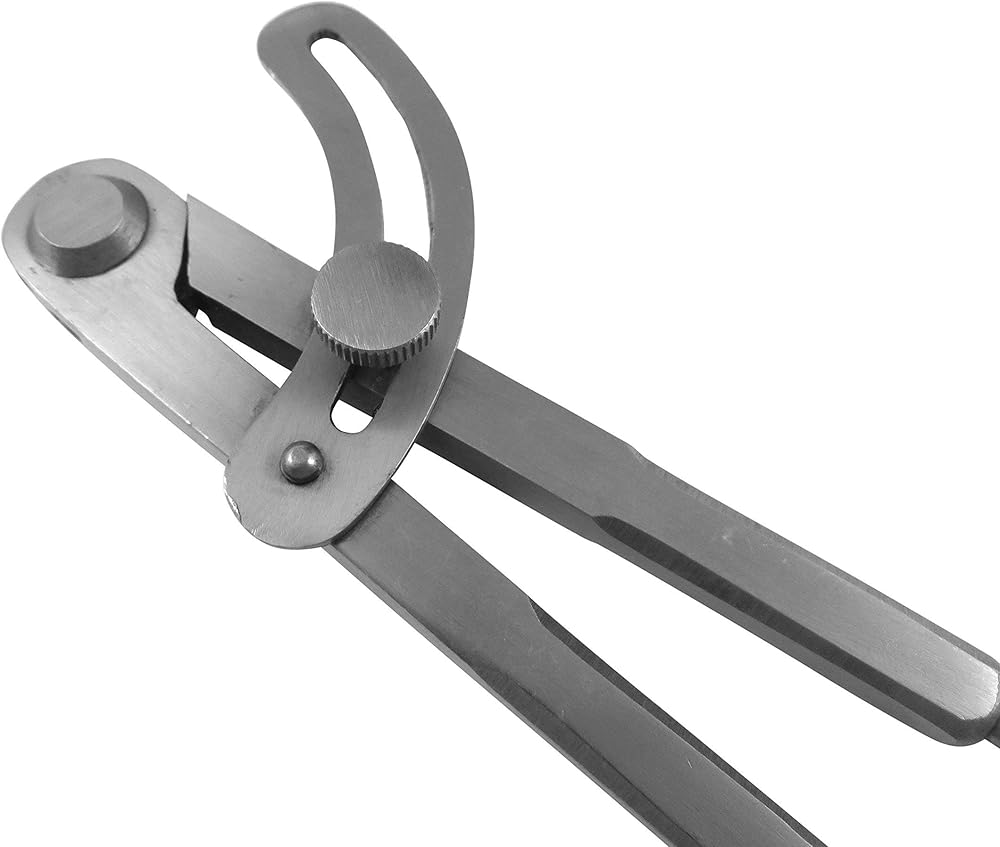 This pair of dividers come with a removable solid brass pencil attachment and a carbide scriber. Pencil holder will work with standard #2 wood pencils. Overall length 6-1/4” with opening of 7-1/2” when legs fully opened. Dividers are made from carbon steel then machined and lapped. The box joint is riveted and will move smoothly and hold settings. Has locking quadrant mechanism with integrated stop. Fashioned with square legs and round hardened tips.