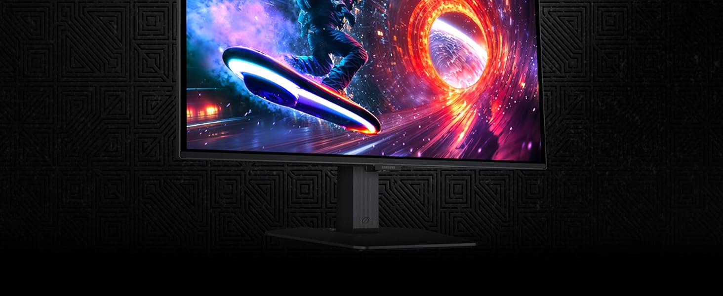 Samsung's 27" Odyssey OLED G5 QHD Gaming Monitor delivers hyper-real visuals and lightning-fast action for exhilarating gameplay, and QD-OLED with QHD resolution provides unmatched picture quality and produces the highest levels of color accuracy and brightness. OLED Safeguard keeps the screen cool by actively helping to prevent burn-in with a Thermal Modulation System, Logo and Taskbar Detection, and Screen Saver while 3-year warranty protects the monitor for the long haul. Glare Free technology enables uninterrupted gaming as it keeps the screen clear of reflections from external light sources. The Pantone Validated screen accurately reproduces 2100+ colors for more immersive gameplay, while HDR10 provides brighter highlights and nuanced shadows for added depth. 180Hz Refresh Rate and 0.03ms (GtG) response time enables fast reactions for ultra-smooth gaming, plus G-Sync compatibility along with AMD FreeSync™ reduces choppiness, screen lag, and image tearing. Black Equalizer improves visibility in shadows, and Virtual Aim Point increases accuracy. Auto
