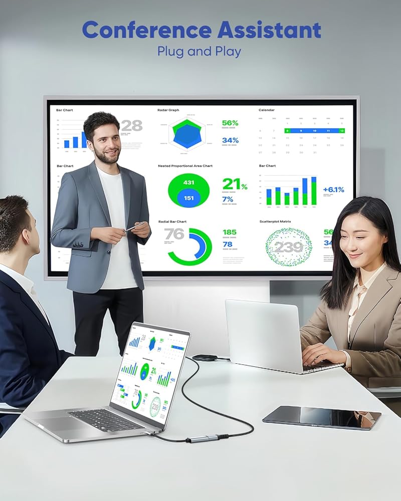 نصائح مهمة: ①يعمل محول USB من النوع C إلى HDMI فقط مع الأجهزة التي تدعم وضع DisplayPort البديل (وضع DP Alt) عبر USB-C. إذا كان جهازك لا يدعم هذا الوضع، فلن يعمل المحول. ②يُرجى استخدام كابل HDMI لا يزيد طوله عن 15 قدمًا لضمان تجربة مستخدم مثالية. ③لا يدعم الشحن. ④يدعم فقط النقل في اتجاه واحد من USB C إلى HDMI