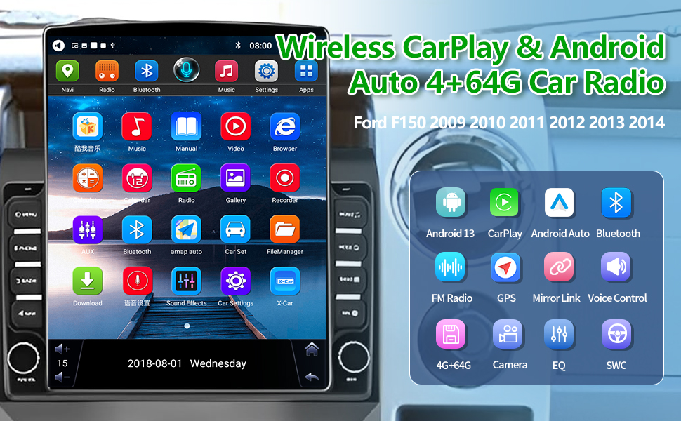 🚘【Wireless CarPlay & Android Auto】Upgrade your driving experience with wireless CarPlay and Android Auto on F-ord F-150 car radio.Effortlessly connect your smartphone via Bluetooth to access calls,messages,maps,and music on the central display.Enjoy hands-free control with voice commands through Siri or Google Assistant,keeping you safe and focused on the road.With this feature,you'll be able to enjoy the convenience of wireless connectivity while maintaining a smarter,safer driving environment.
