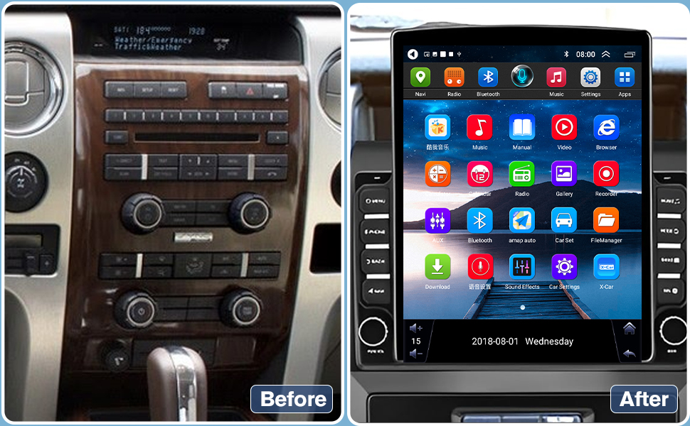 🚘【4+64G Replacement for Radio】This head unit perfect fit for Ford F150 2009 2010 2011 2012 2013 2014, Comes With Plug and Play Cable. Designed to match the factory dashboard without modification or splicing. Please send us your car's model, produce year and a car dashboard picture by Amazon chat, we will help you to check if this car stereo is suitable for your car