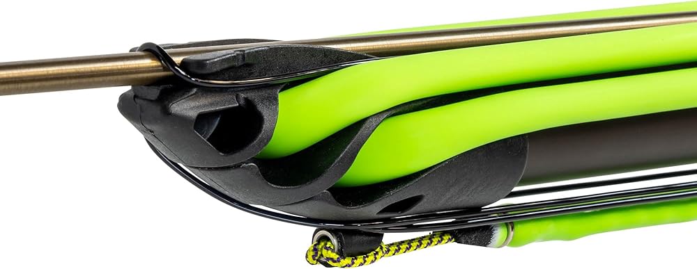 FEATURES: Optional speargun butt for easy loading. Integrated reel mount in handle. Steel reinforced muzzle eyelet for reels. .25″ stainless steel sear and line release. Features an open muzzle, ergonomic handle, ambidextrous safety and line release.