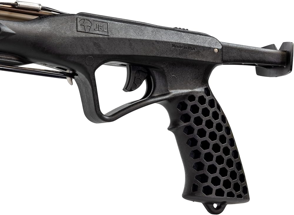 CARBON INFUSED HANDLE: The carbon infused polymer handle is designed to feel like a natural extension of your arm, if you can point with this speargun, you can shoot fish. The aerospace aluminum extruded barrel with integral rail delivers unmatched stiffness and accuracy, easily taming the two 5/8” band power source.