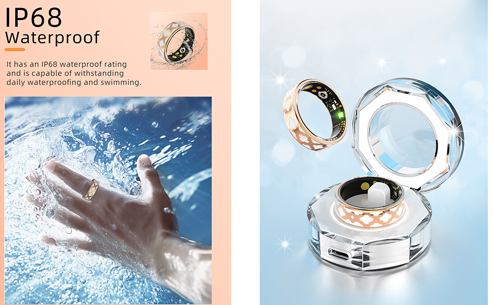 【IP68 Waterproof】The smart ring with IP68 waterproof rating can meet your waterproof and dustproof needs in your daily life or outdoor sports.