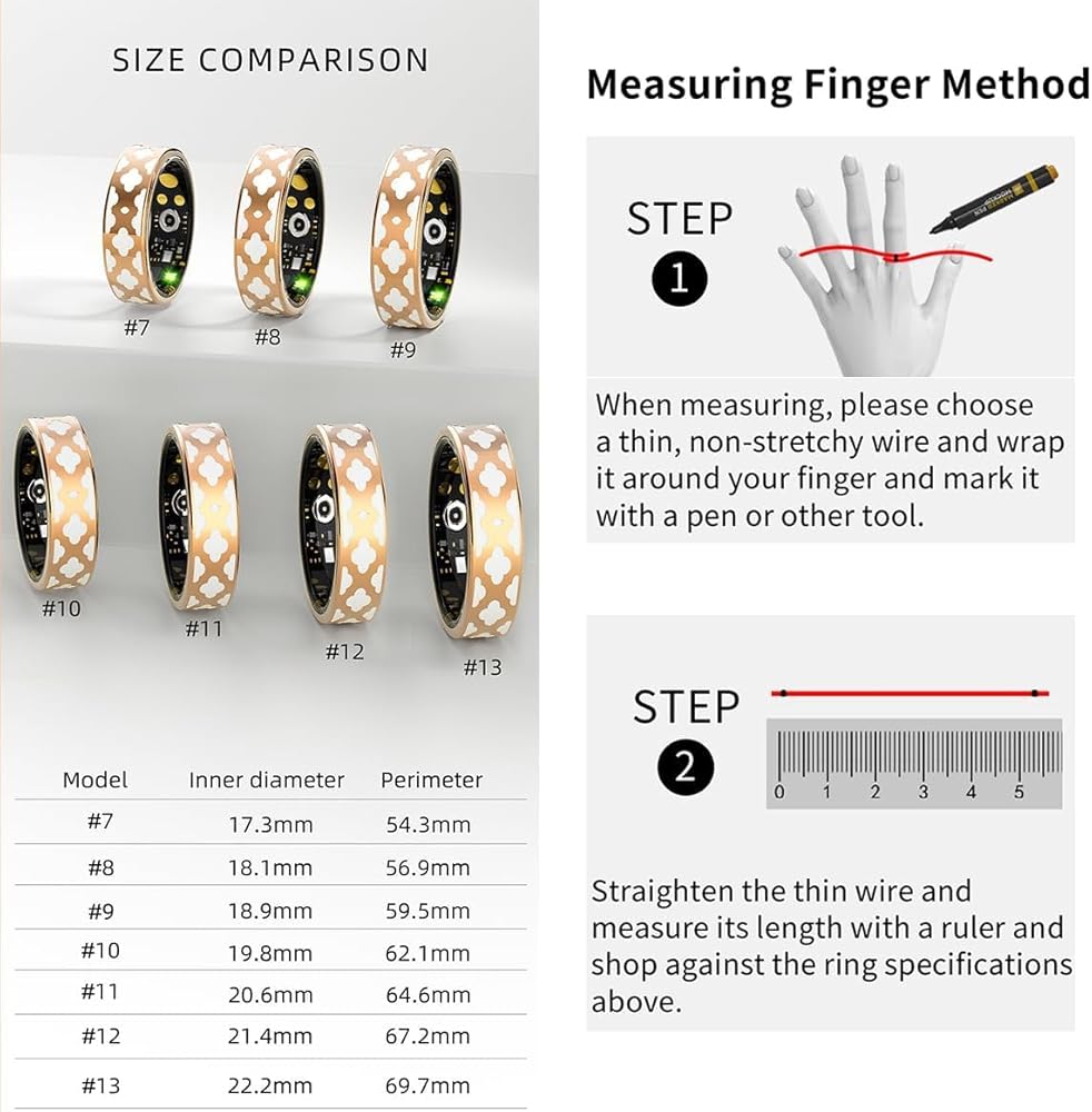 【Recording of Exercise Data】This smart ring is equipped with high-quality sensors, which can accurately record steps, distance, calories and other workout data.