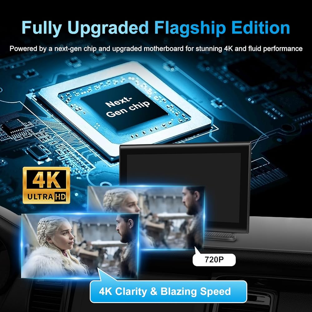 【Meet the Flagship Edition】:The Ultimate All-in-One Hub for Your Car, Now with Built-in 4K Recording. We didn't just upgrade our bestselling 7" screen; we completely reimagined it. Introducing the Fully Upgraded Flagship Edition, now with a revolutionary integrated 4K Dash Cam and 1080P Rear Camera—a groundbreaking feature set that transforms your display into a comprehensive driving command center. Powered by a next-generation chip and advanced motherboard, it delivers a breathtaking 4K visual experience with double the speed for unparalleled performance.