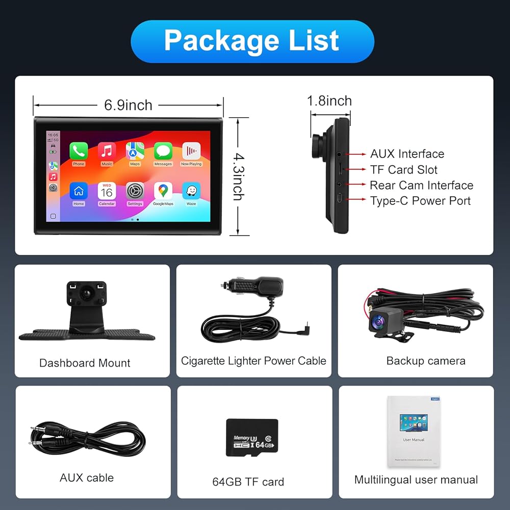【Plug & Play CarPlay Screen for Cars】Upgrade instantly with this 7" HD touchscreen—no wiring or tools! Plug into your car's cigarette lighter, mount on dash, and enjoy wireless CarPlay/Android Auto. Works seamlessly with any vehicle (cars, trucks, RVs) while keeping your factory stereo. The ultimate CarPlay screen for cars—modern tech, zero hassle!