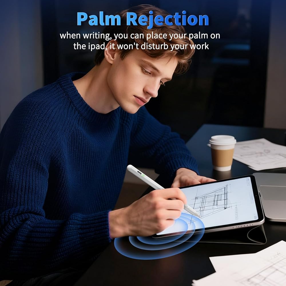 Palm Rejection & Magnetic Attachment : When the stylus is in iPad mode (displays a green light), the Palm rejection technology enables your palm to rest comfortably to ensure a smooth and natural experience. Equipped with dual magnets design that securely attach to iPad, eliminating worries about rolling and lost.