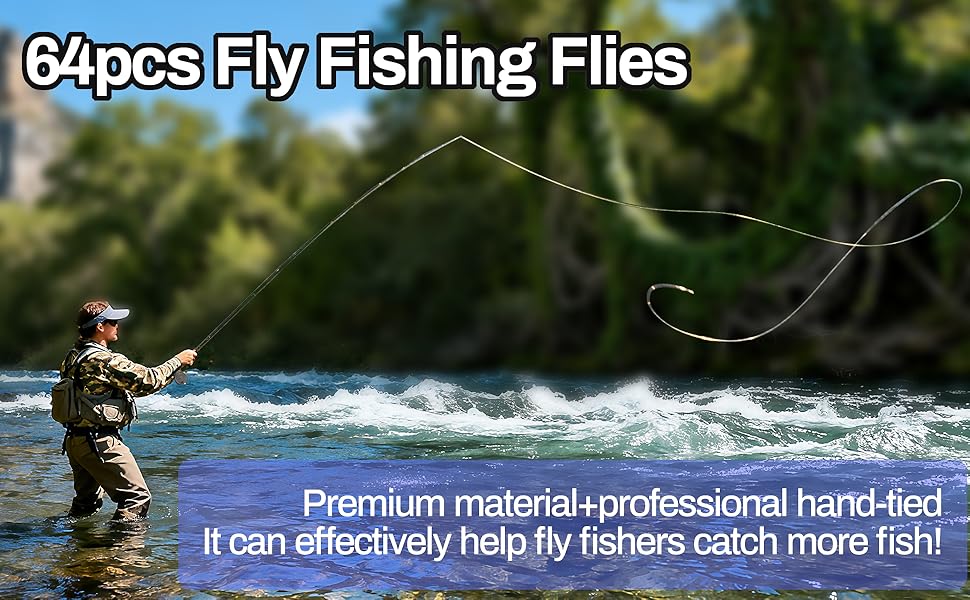 【Versatile 16 Fly Pattern Assortment】: The comprehensive 64-piece kit offers 16 distinct fly patterns, ensuring perfect presentations for diverse fish species and varying water conditions.