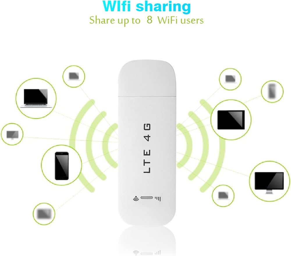 Multi-User WiFi Hotspot Functionality: The 4G LTE WiFi adapter supports sharing internet connections with up to 8 simultaneous users through its hotspot capability. This portable router function allows family and friends to enjoy shared internet access from a single device.