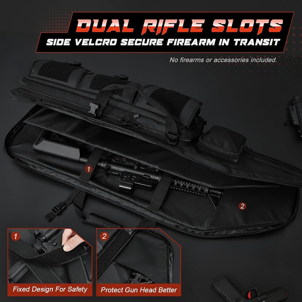 DULCE DOM Double Rifle Case 36/42/48 inch Soft Gun Bag Tactical Backpack with Movable Divider for Hunting Shooting Range, MOLLE System Multiple Magazine Pouches & Accessory Bags