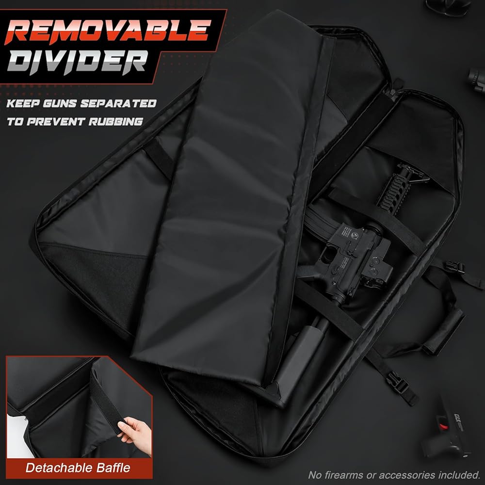 KEEP YOUR GUNS SAFE: Our rifle case features a removable divider and adjustable straps to securely hold 1 or 2 rifles. Plus, the heavy-duty polyester exterior and thick padding provide superior protection.