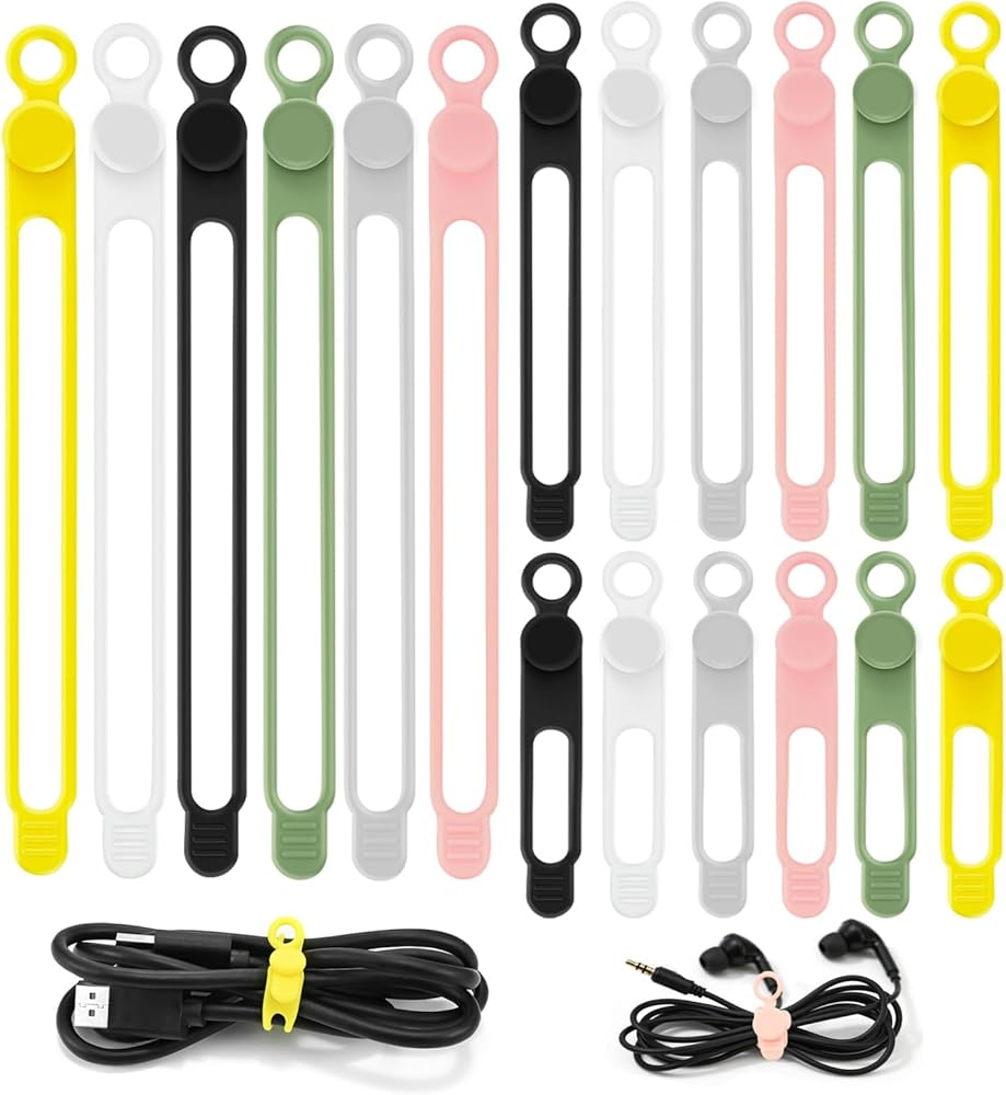 Package Contents:You'll receive 18 Reusable Cable Ties in 6 vibrant colors. Use different colors to categorize cords by type or user, making identification quick and intuitive.We provide the silicone cable organizer,that you enjoy the lasting peace of mind that comes from a neat, efficient, and personalized space.