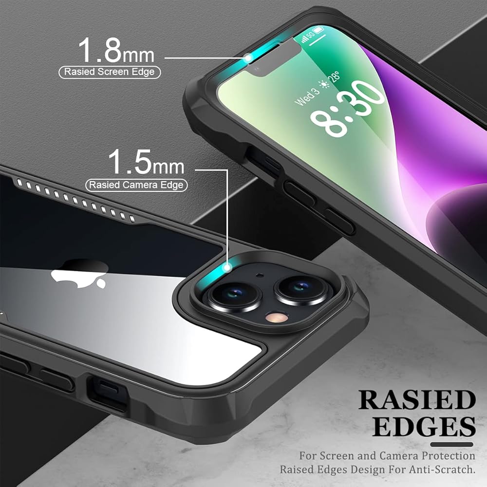 360°FULL PROTECTION: This rugged phone cover with protective front hard casing and dual-layered clear back cover provide 360 degree full body protection for your iPhone 14. Impact resistant TPU lining provides shock absorbing bumper protection for the corners and protect it from accidental drops and falls.