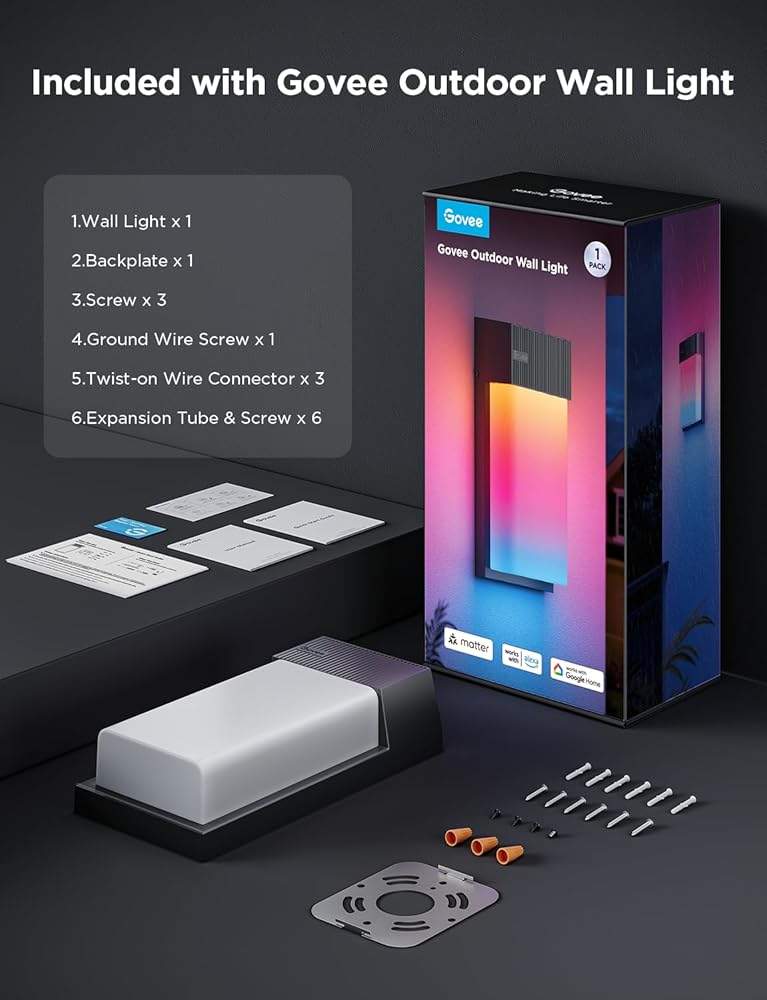 Motion-Activated: This wall light can pair with Govee Outdoor Motion Sensor (sold separately). Once set up, motion can trigger a variety of preset lighting effects to create a smart lighting ecosystem.