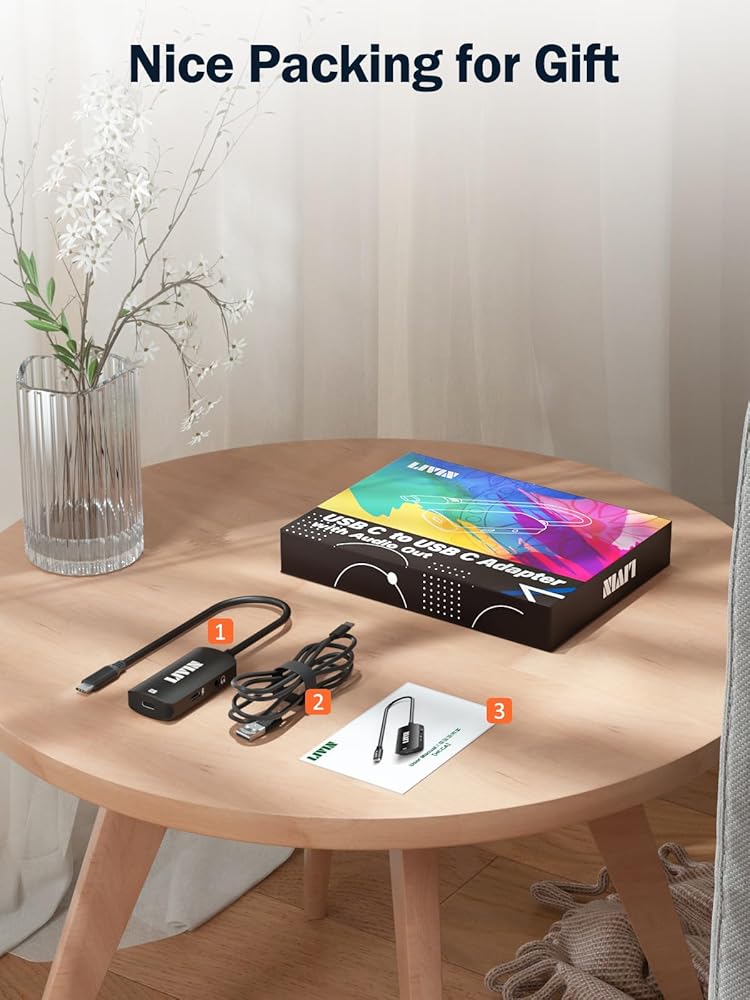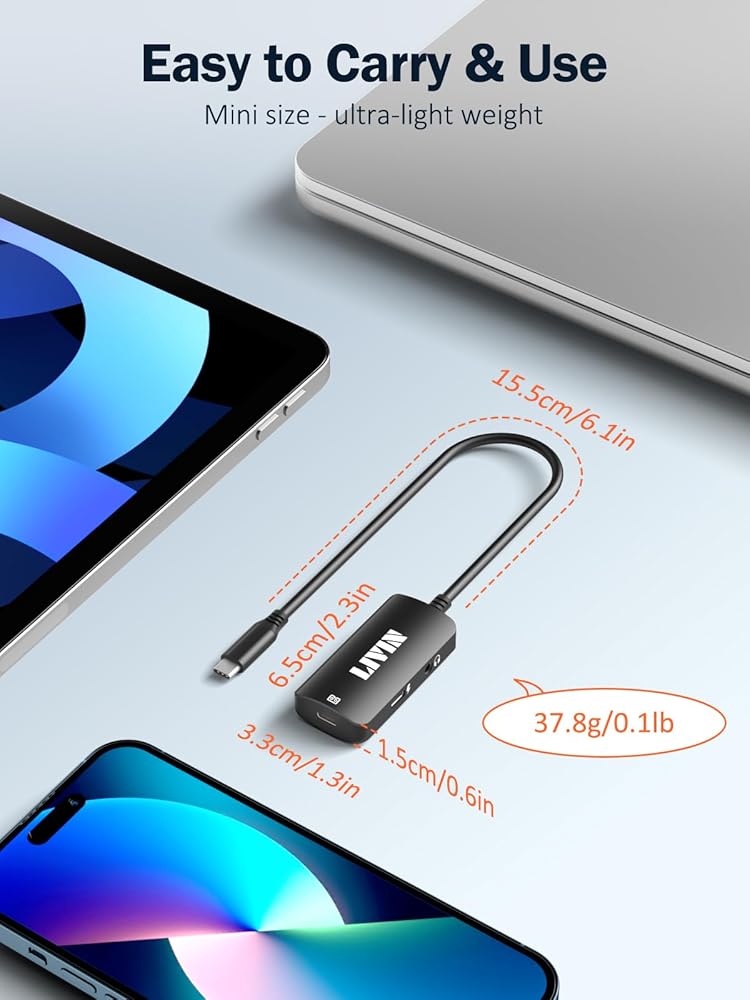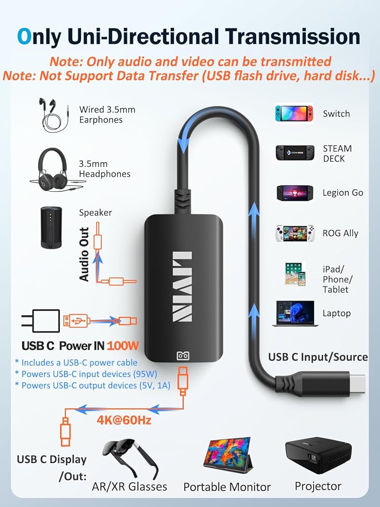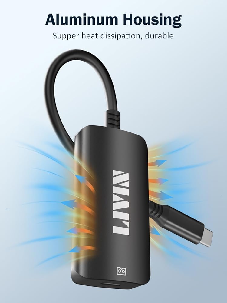 LIVIN USB C to Portable Monitor、AR Glasses XREAL One、Air 2 Pro/VITURE Pro/RayNeo Air 2s、3s/Rokid,【4K@60Hz+PD 100W+Audio 3.5mm】,USB C to Type C Adapter iPhone15/16、Android、PC、Switch、Steam Deck、Rog Ally