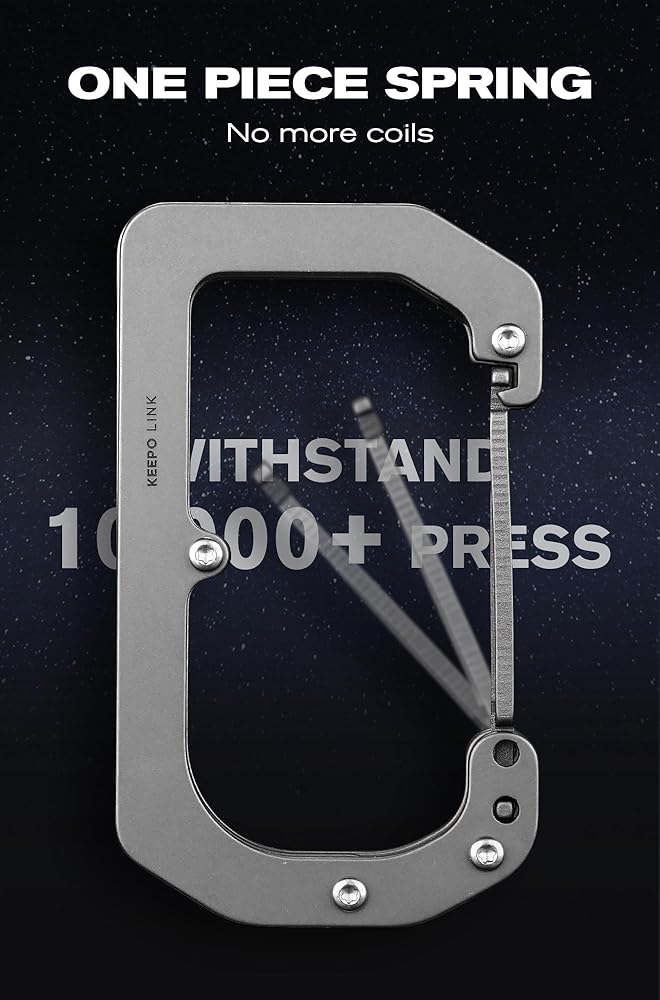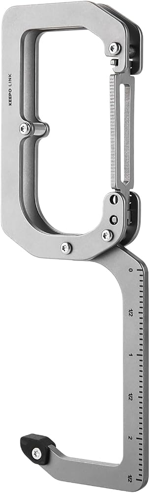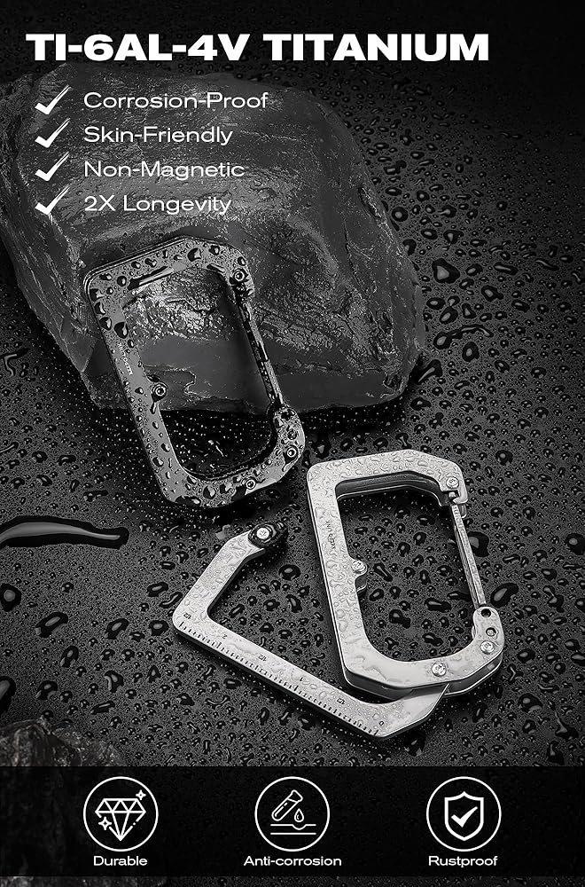 KEEPO LINK 3-in-1 EDC Titanium Carabiner Keychain Clip with Measuring Ruler, 180°Folding Purse Hook for Table & Outdoor Use