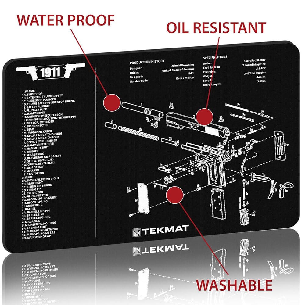 TekMat Original 11" x 17" - 1/8" Thick Oil Resistant Non-Slip Waterproof Scratchproof Washable Handgun Maintenance & Cleaning Mat for use with 1911 | 1911