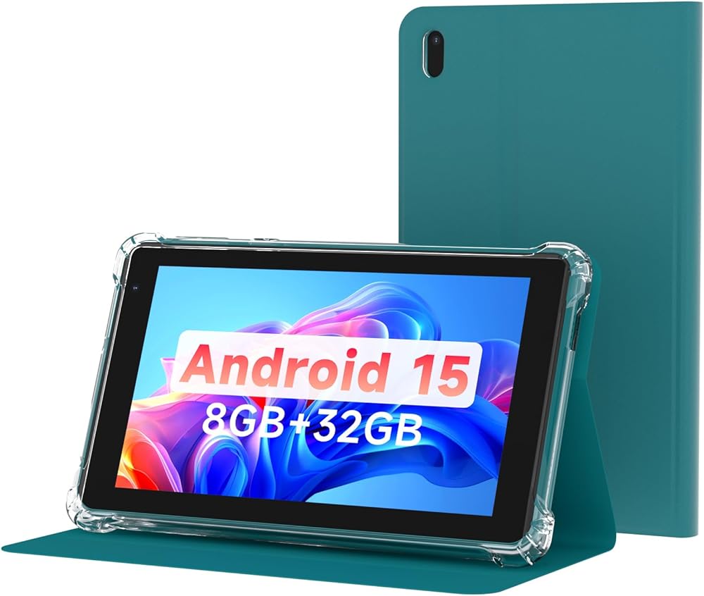 Design and Protection: The tablet comes with a transparent, shock-absorbing protective case. A key feature of this case is a built-in, foldable stand that allows the tablet to be propped up at a comfortable viewing angle for hands-free use.