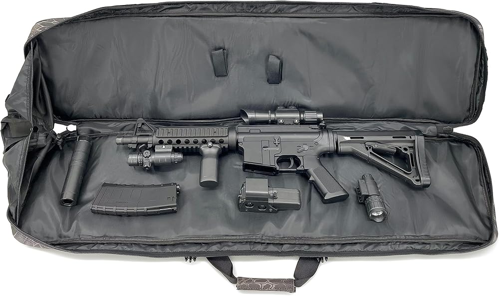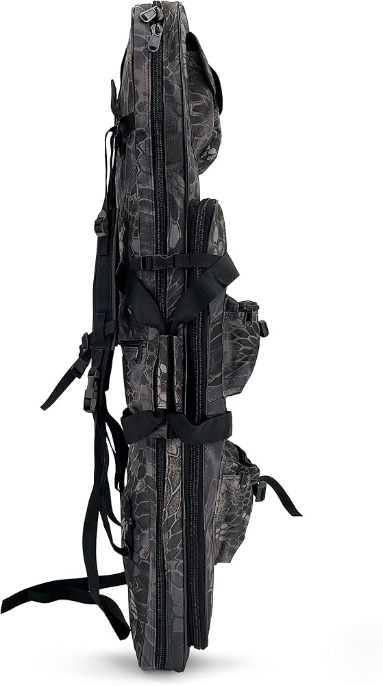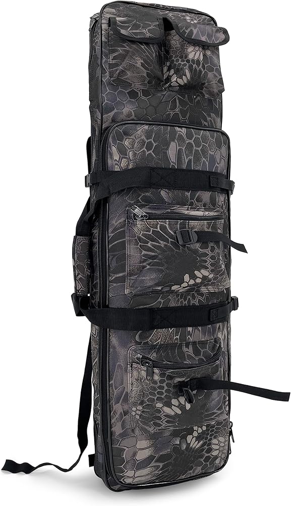 The Bag is Suitable for One Rifle or a Fishing Rod, and the bag has five external pockets which can hold small tools, accessories, cell phones and other necessary things