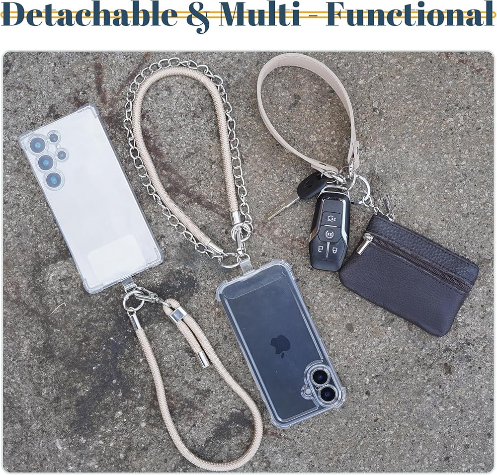 Phone Lanyard Crossbody – Ultra-Thin Tether for Secure Hold:Comes with two 0.6mm ultra-thin phone patches that fit between your phone and case. Secure your phone without blocking the charging port—no need to remove your case when charging
