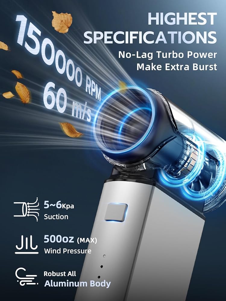 Smiling Shark Compressed Air Duster, J02 Super Power 150000RPM Aluminum Electric Air Duster with Mini Vacuum Cleaner, 2 Modes (Normal&Storm) Adjustable Dust Blower for PC/Outdoor/House/Car