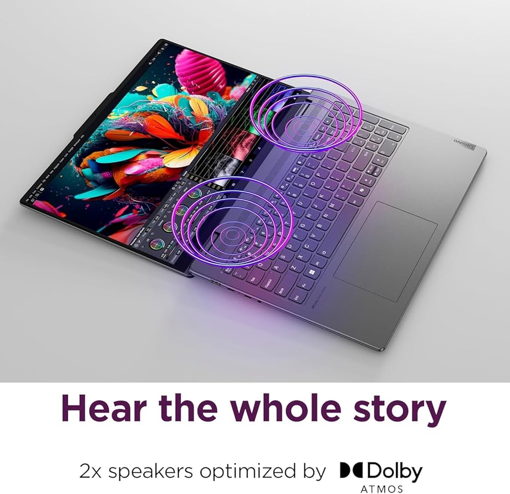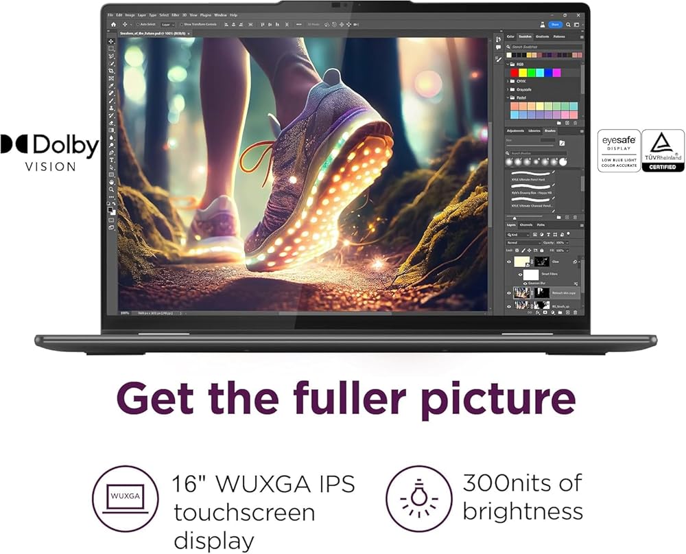 STUNNING DISPLAY - The Yoga 7i 2-in-1 laptop combines stunning sights and sounds on its expansive 16″ WUXGA display, offering Dolby Vision immersion and a 10-point multi-touch glass panel, while the 2MP FHD IR camera ensures you look sharp in the best light. Additionally, Rapid Charge technology keeps you productive by delivering 3 hours of battery life with just a 15-minute charge, ensuring your creativity never stops