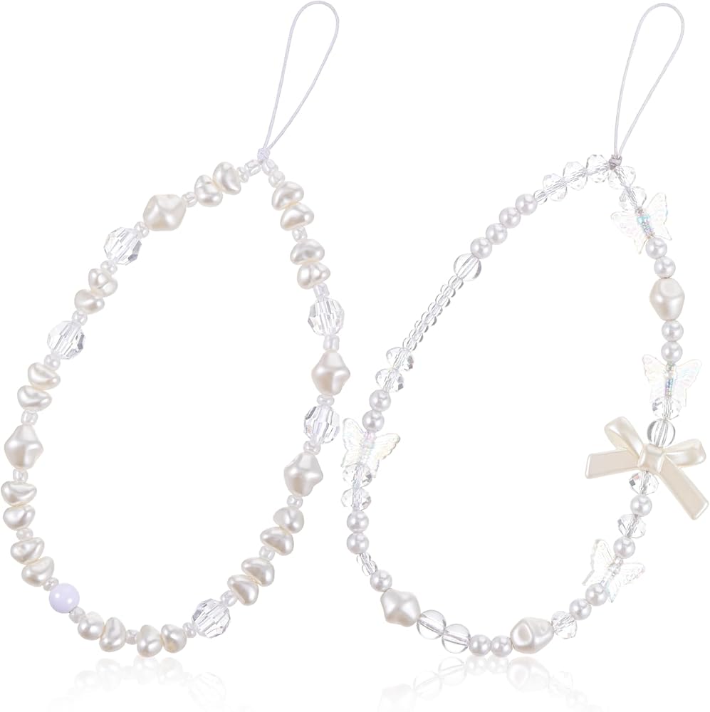 1 x Irregular Pearl Phone Charm Strap + 1 x Irregular Butterfly Charm Strap