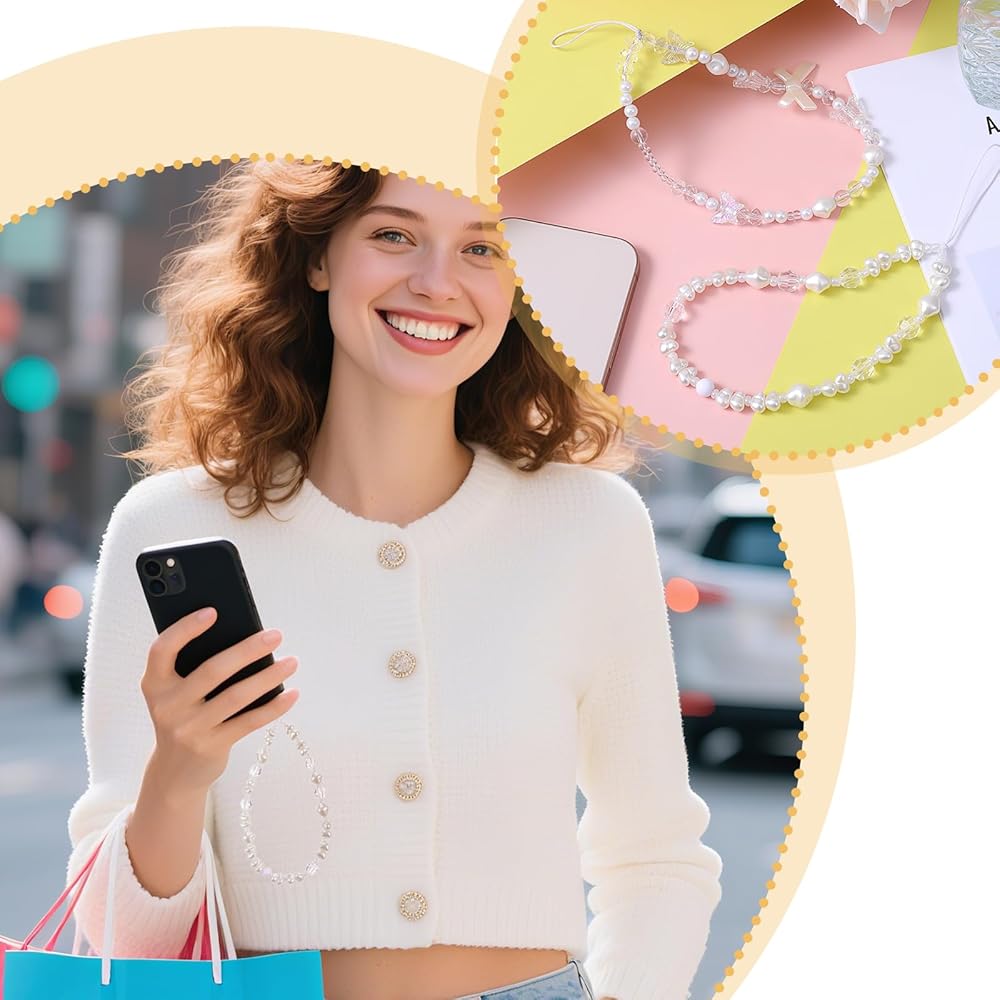 This phone charm strap is amazing! Made of high-quality PE material with a sturdy cord, it's lightweight, sturdy, and resistant to breaking. It offers a secure grip and prevents drops, making it incredibly safe to use. Two irregular designs, a pearl (21 cm) and a butterfly (20 cm), break the monotony and add a touch of retro flair. They're eye-catching and personal, making you stand out effortlessly. Compatible with all phone cases, it's easy to attach and remove with a punch-hole, ensuring charging and buttons remain accessible. It can be used to decorate phones, cameras, bags, and more. Wearing it hands-free makes it incredibly convenient for shopping or cycling. Two models are included, excellent for personal use or as a gift, and a thoughtful gift for friends and family during the holidays.