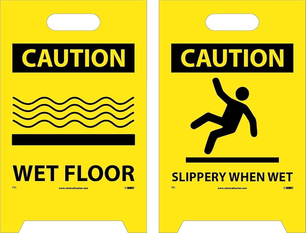 Caution Sign: the double-sided wet floor sign warns the passers about the potential of slipping over the wet floor. It can stand on its own and can be reversed to match the hazardous conditions