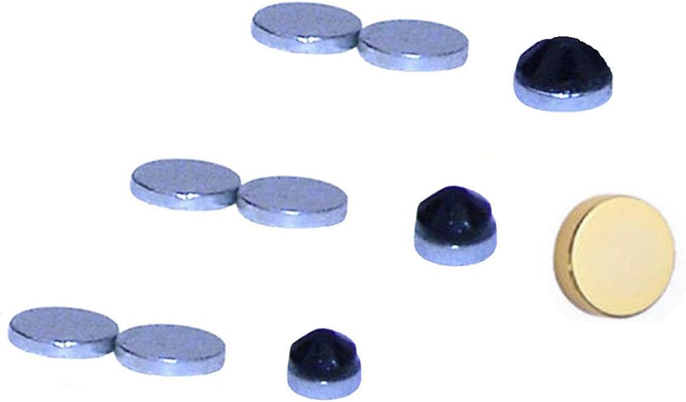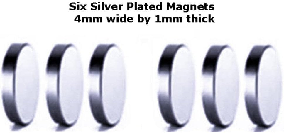 - Strong Magnetic Clip On Studs; Each stud includes two 4mm wide by 1mm thick magnet backs; There's one 8mm wide by 2mm thick gold plated super magnet