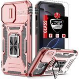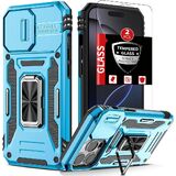 for iPhone 11 Case with 2 Screen Protectors,Built-in Slide Camera Cover,for 11 Phone Case with 360°Rotation Stand Ring,Shockproof Anti-Scratch Military-Grade Drop Heavy Duty Protection Black