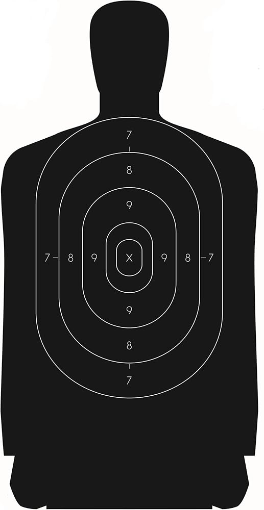 The B-27(24") is the Official NRA Police Silhouette target. The B-27(24") target is 24 inch wide version of the standard 35 inch wide B-27 target. The B-27(24") target is designed to be shot at at a distance of 50 yards. The B-27(24") target is a human silhouette target black in color. The target includes 7 through 9 rings for scoring, with an X ring added for tie breaking. The B-27 is used in Police Pistol Combat shooting competitions. The B-27(24") target is printed on light paper. All targets sold by CHLTargets.com are Made In The USA.