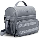 Construction & Pockets: The men dual compartment lunch bag features 2 main compartment with a zipper closure (double zippers for added convenience).Different foods can be placed on the upper and lower layers. Can play a dry and wet separation function.On the outside,there is 1 front zipper pocket for small essentials like utensils, napkins, handkerchiefs, keys, or your mobile phone. Features two side mesh pockets for water bottle and umbrella.