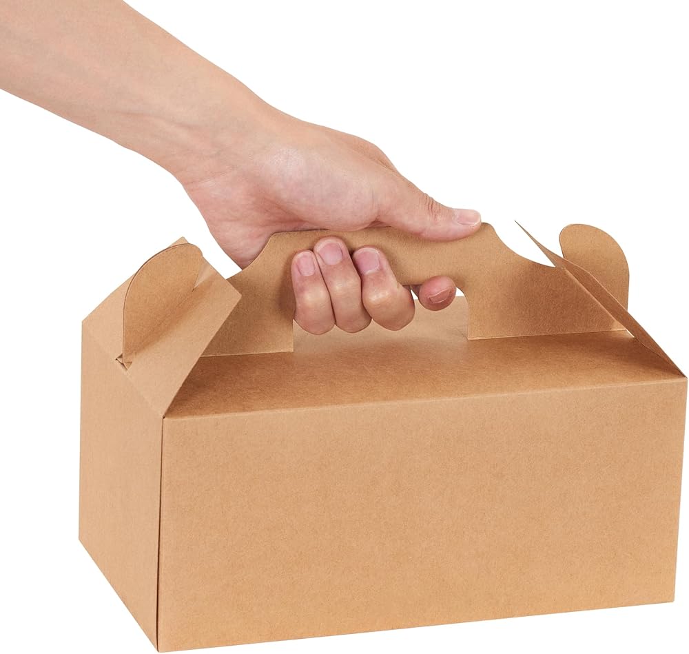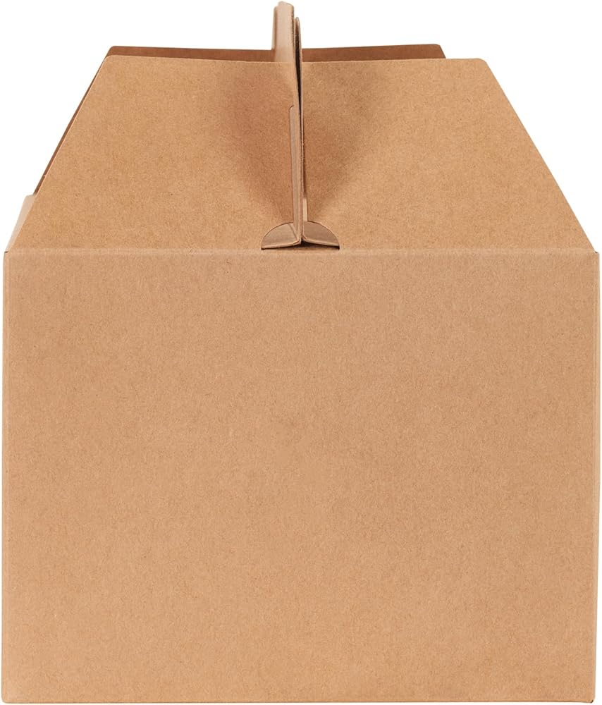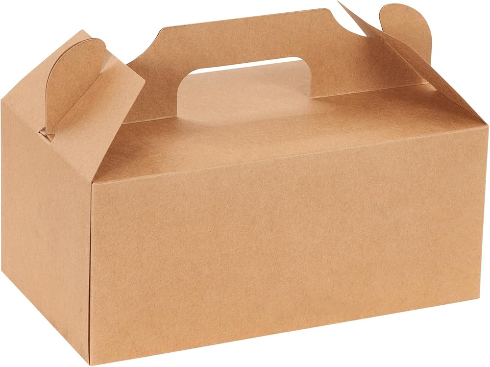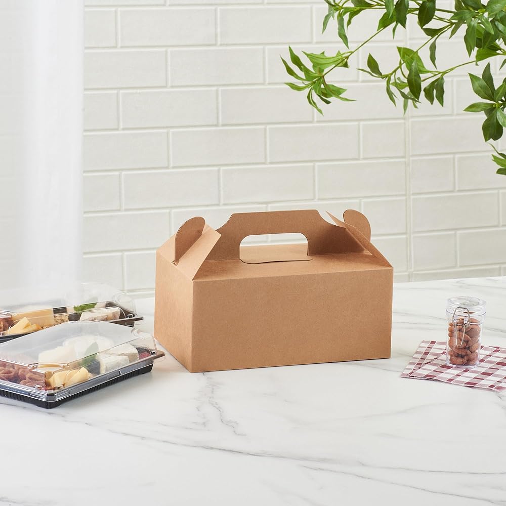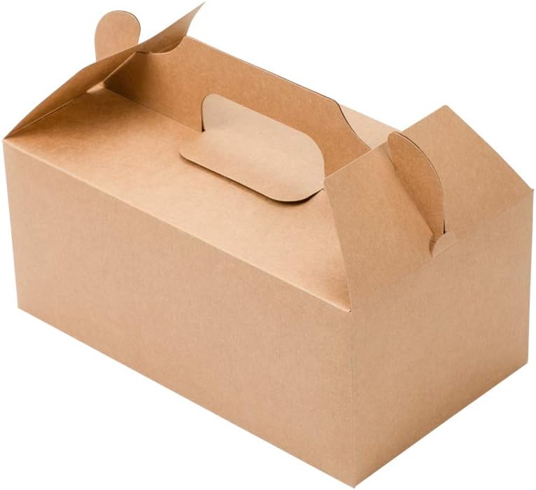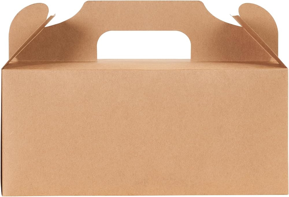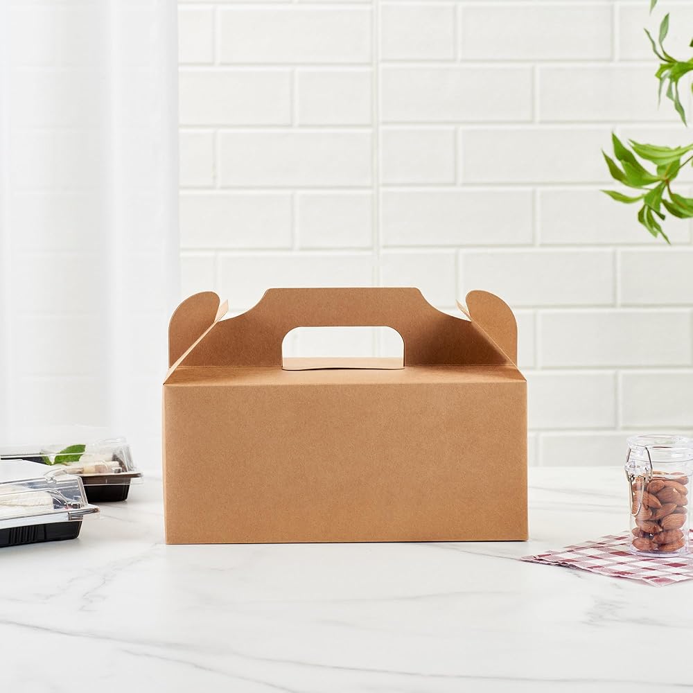 Restaurantware Bio Tek 10.2 x 5.9 x 6.9 Inch Treat Boxes With Handles 100 Rectangle Gable Boxes - With Secure Tab Grease-Resistant Kraft Paper Cardboard Lunch Boxes Recyclable